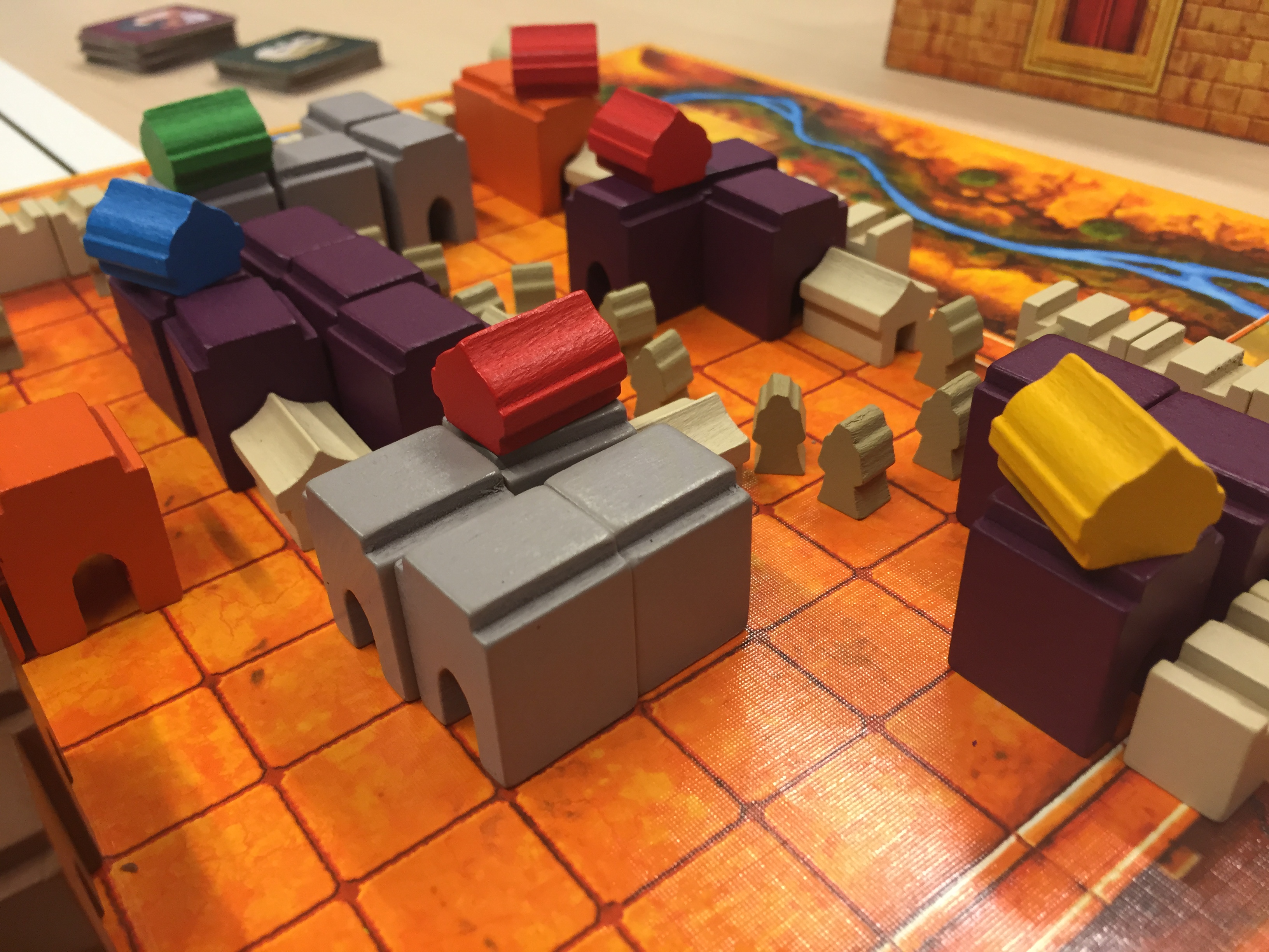 –Les bonus des tours s’accompagnent de marchands. Le premier à acquérir le bonus de la tour 1 reçoit 3 marchands, de la tour 2, 2 marchands et de la tour 3, 1 marchand. Ça rend les bonus des « petites » tours beaucoup plus attractifs et augmente la difficultés de vos choix.