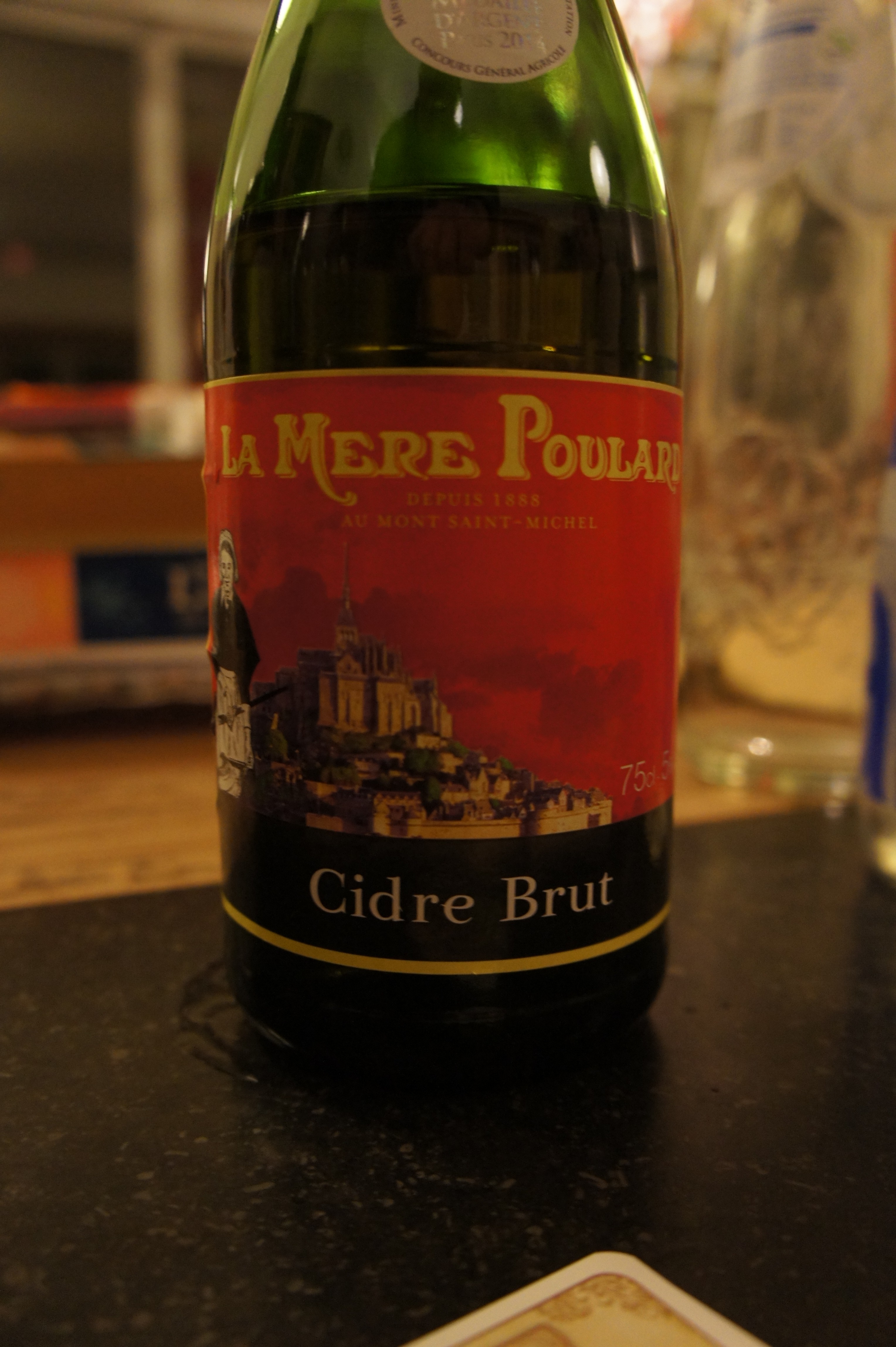 Une bouteille de cidre brut de la mère Poulard.  Voilà qui n’est pas courant chez Vin d’jeu.  Il faut avouer que ça désaltère bien 🙂