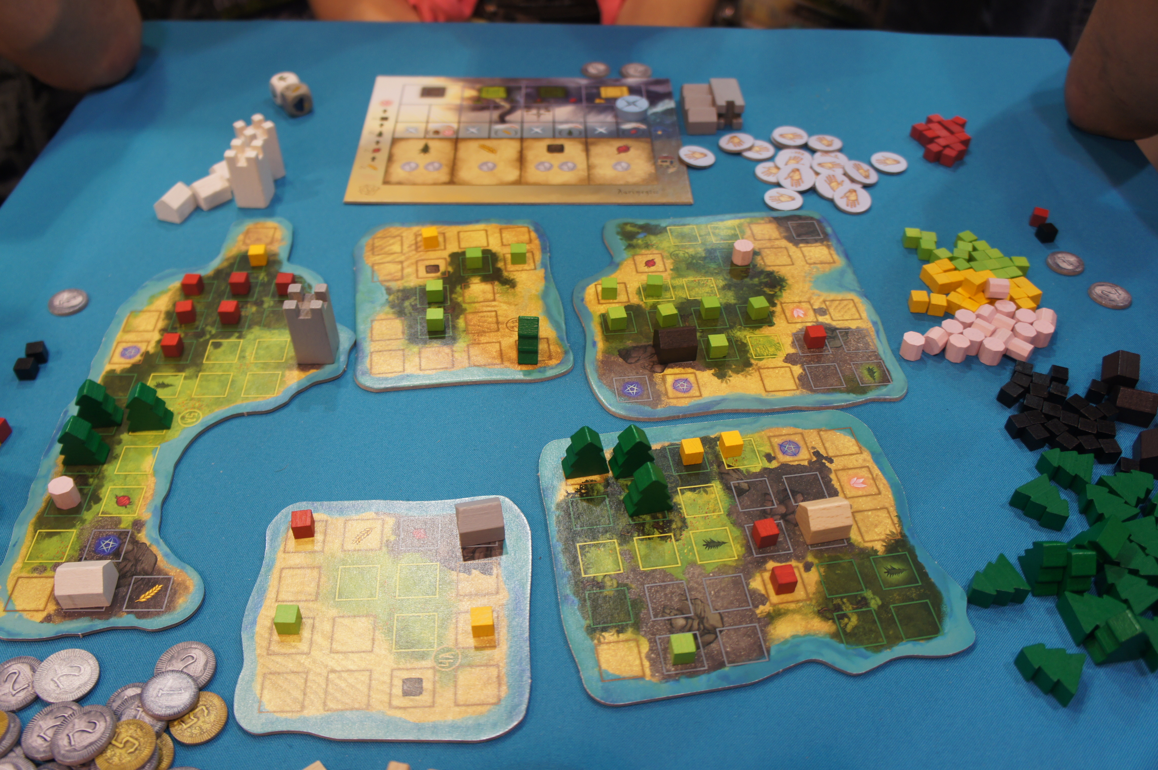 Bon je le dis tout de suite ce jeu est une de mes grosses déceptions d’Essen. Mais, car il y a un mais de taille, ce jugement doit être pris avec des pincettes car je ne peux pas donner un avis argumenté pour le moment. Pourquoi? Tout simplement parce que nous avons reçu la pire explication d’un jeu en 15 ans d’Essen. Et pourtant je peux vous dire qu’on a vu du pays, entre le Coréen qui croit qu’il parle anglais, le Japonais qui essaye de parler anglais avec des mots allemands tout en gardant un magnifique sourire imperturbable, l’Allemand qui parle français comme une vache espagnole… ou bien le Français qui parle français mais qui explique les règles comme un pied! 🙂