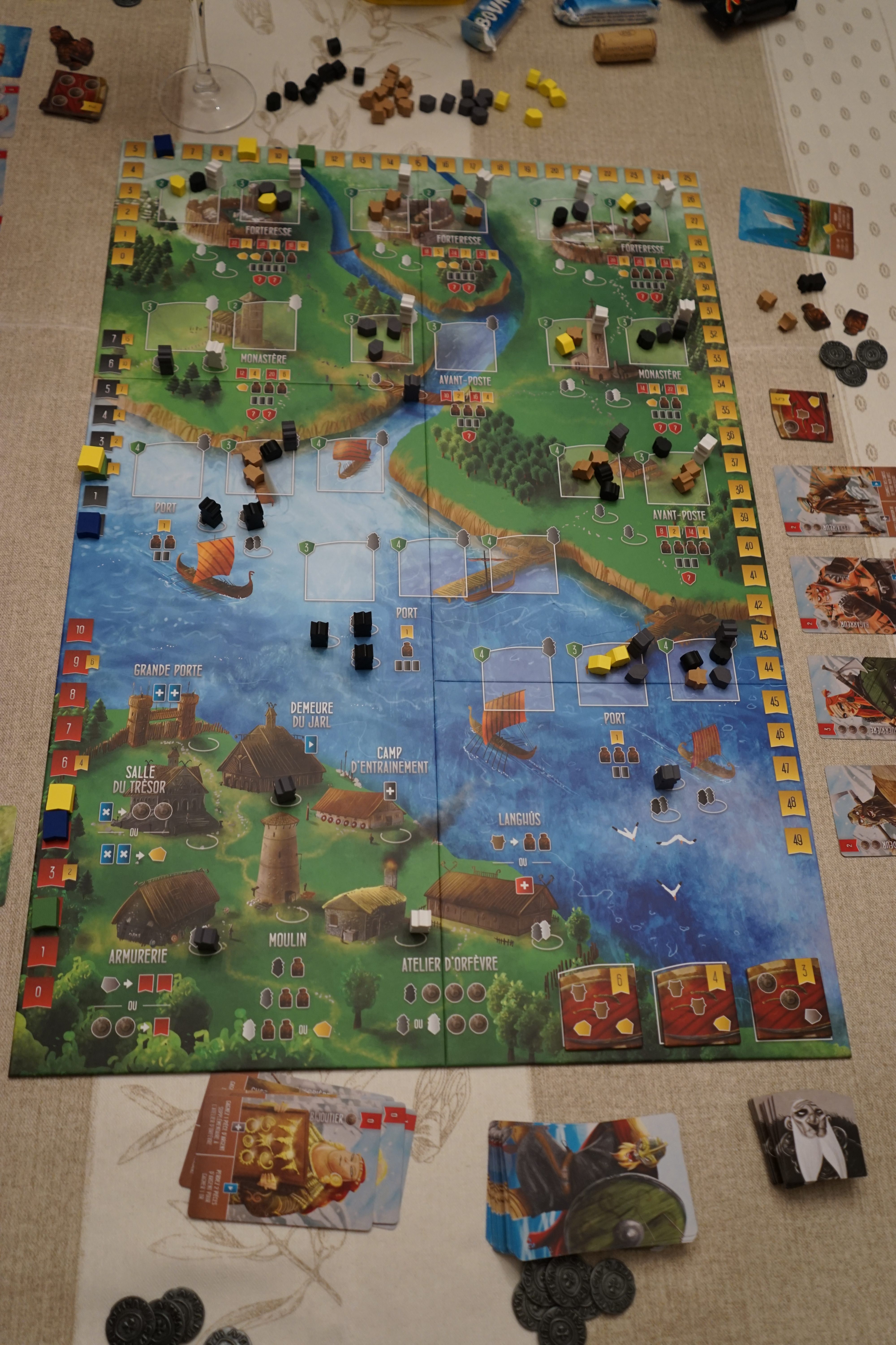 Les règles claires sont expliquées en un temps très contenu. La partie commence, et la mécanique se met en place : les actions sont simples et assez intuitives.  Les raids se multiplient, les ressources s’accumulent.  Des stratégies différentes se dessinent.