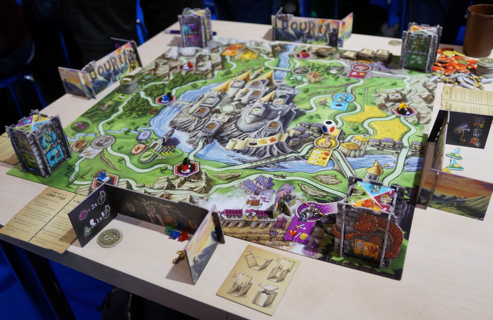 Touria n’est clairement pas un grand jeu d’optimisation comme savent le faire ses 3 auteurs, mais il remplit son rôle d’amuser la famille autour d’un jeu conte de fées où les joueurs vont parcourir le royaume pour amasser richesse et pour prouver leur amour à la princesse ou au prince en affrontant, à plusieurs reprises, le méchant dragon de la montagne 🙂 Mais une fois toute cette bravoure prouvée, encore faudra-t-il reconnaître la porte de la chambre de votre aimé(e) avant vos concurrents et éviter de tomber sur le Roi qui ne vous vois pas du même œil que sa fille chérie.