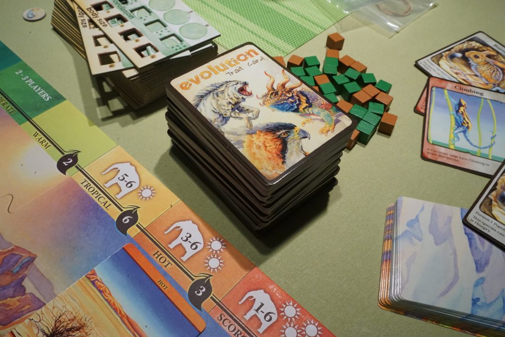 Evolution Climate est un évolution 😉 d’Evolution qui est en réalité une évolution (😉 ) du jeu evolution the origin of species.  5 fois le mot évolution dans une même phrase, promis, j’essaye de me calmer 🙂  Tout ça pour vous dire qu’Evolution Climate c’est Evolution agrémenté de l’extension Climate.  North Star Games a décidé de sortir le jeu en stand alone parce qu’ils ont dû refaire toutes les cartes car chaque carte contient des sigles utilisés dans Climate.  Comme le plus gros était fait (refaire les cartes), autant tout refaire se sont-ils dit!  Ce qui n’empêche qu’on peut très bien jouer au jeu de base sans l’extension avec la boite d’Evolution Climate.  Bien vu 🙂