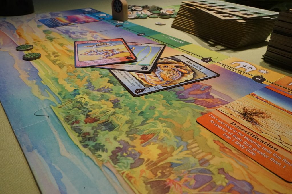 1482 Evolution 4L’aspect le plus intéressant d’Evolution est l’équilibre entre herbivores et carnivores.  S’il y a trop de carnivores, il vont finir par se bouffer entre eux quitte à même mourir de faim.  Il n’est pas rare de se retrouver sans plus aucune espèce carnivore en cours de partie.  Par contre, s’il y en a trop peu voire pas du tout, les herbivores vont plus se battre pour la nourriture qui va se faire de plus en plus rare.  C’est à ce moment-là qu’il est judicieux de faire évoluer une de ses espèces en carnivore pour se régaler de ces espèces en déclin.
