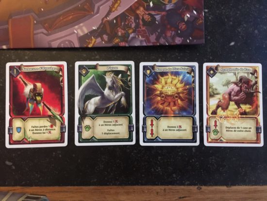 Le second point sera que les points de vie de nos héros sont cachés derrière un paravent. Au fur et à mesure de la partie, la tension va augmenter et on se demandera qui, des adversaires, en possède encore le plus. En effet, lorsqu’un joueur meurt, la partie prend fin et le gagnant est celui qui en a le plus. De nouveau dilemme !