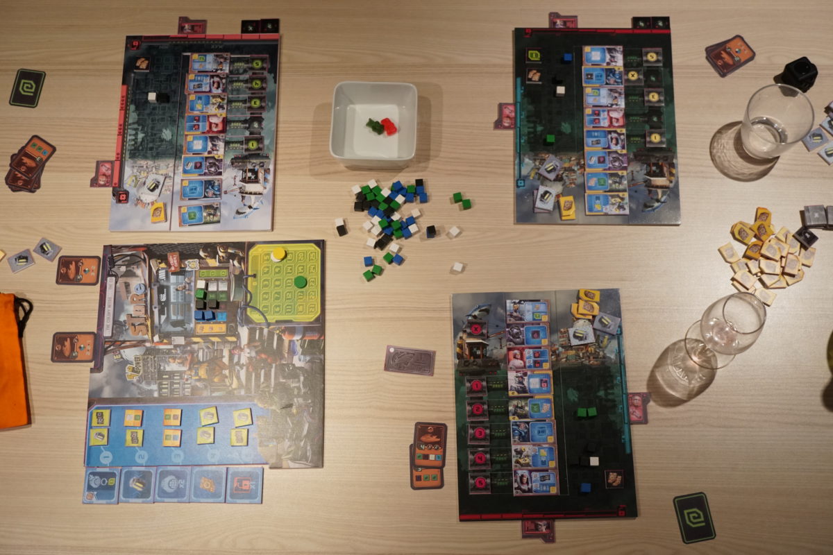 Elle n’est pas fort présente et se situe principalement au niveau des contrats. Même s’il y a moyen d’en avoir rien que pour soi, la majorité des contrats sont disponibles pour tous les joueurs. On va viser à remplir certains contrats tout en étant attentif à ce que les adversaires font afin de ne pas se faire griller la priorité 🙂