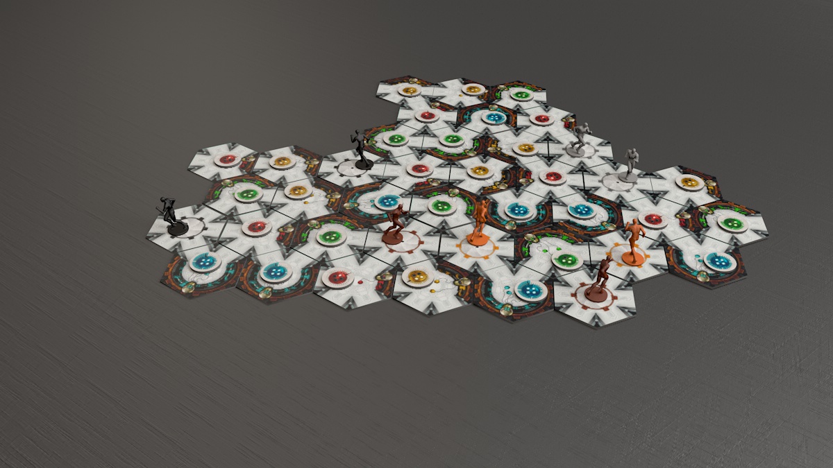 Les choix paraissent évidents et ils le sont surtout quand la tuile de départ ne contient plus de PV mais ils ne le sont pas toujours. On a en effet tendance à vouloir se concentrer sur les PVs gagnés mais bloquer un adversaire peut faire très mal. Et faire actionner un mécanisme peut bloquer les héros adverses. Vous allez donc orienter vos choix pour gagner un maximum de PVs, bloquer vos adversaires et veiller à éviter d’être bloqué.