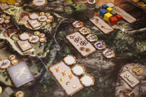 Mais si un joueur commence avec les anneaux, puis prend la tuile infinie,+2PV/anneau et en plus arrive en haut des pistes or et argent, une spécialisation qui marche ! Mais uniquement si les autres joueurs l’ont totalement laissé faire. Donc stratégies variées et adaptabilité.