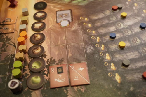 Enfin, les ressources apportent 2 avantages et il vous faudra bien mesurer le pour et le contre de chaque avantage avant de prendre vos décisions. Les ressources servent principalement aux offrandes de la reine mais les pommes permettent de faire monter une de nos fées à la place d’une fée adverse qui elle doit alors redescendre d’un niveau, le miel permet de changer l’ordre du tour et le pain permet de libérer les fées elfes enchainées.
