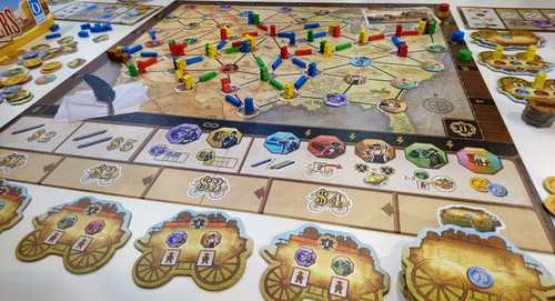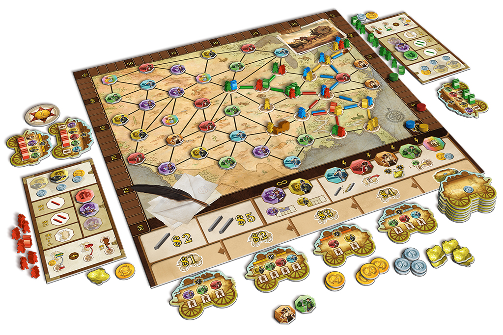 Pioneers est à la fois simple et malin. Il fera, en effet, penser aux aventuriers du rail, par son système de pose de routes. Mais il ne sera pas aussi simple puisqu’il combine également les déplacements de la diligence sur le plateau, de positionnement de colons, et d’activation de bonus.
