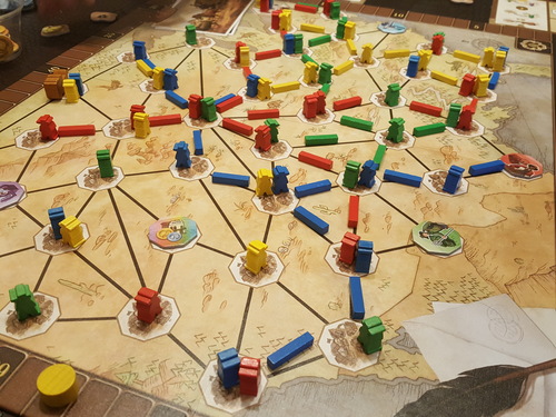 On aura également un effet de « course » puisque le jeu stoppe lorsqu’un joueur a posé toutes ses routes, il est donc indispensable donc garder le même rythme de construction que ses adversaires.