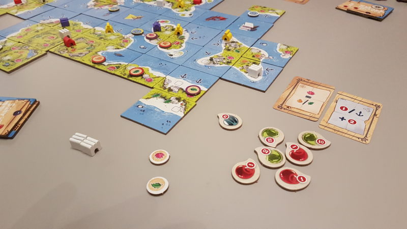 20180904_204105A l’un de ses tours, un explorateur pourra poser un jeton joker qui remplacera une ressource ou ajoutera un port autour d’une île. Ce jeton servira surtout à faire basculer une ressource en votre faveur, mais son usage est limité puisqu’on en possède que 4.