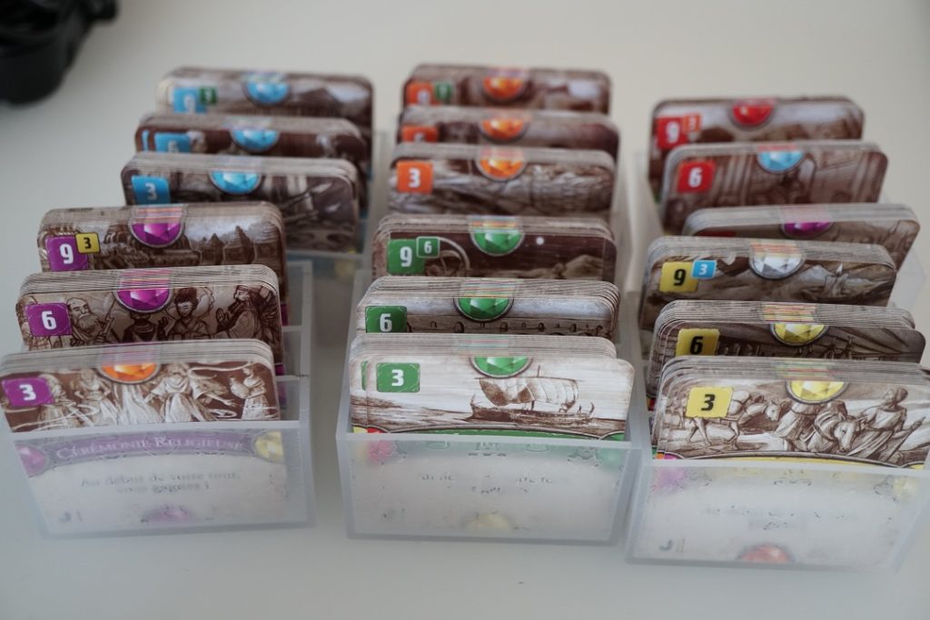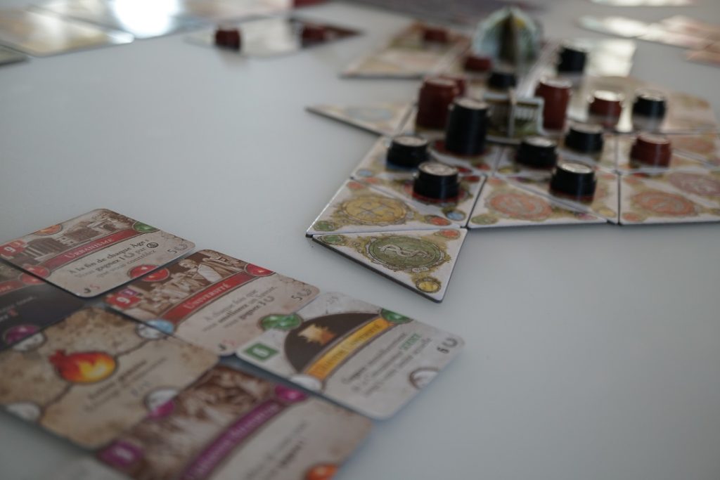 Lors des phases 2 et 3 vous allez pouvoir dépenser vos ressources pour construire des cités qui vont vous permettre essentiellement de gagner des PVs en vous permettant d’atteindre certains objectifs. L’ergonomie du jeu aurait pu être améliorée à ce niveau car il n’est rappelé nulle part les bénéfices et les coûts nécessaires à la construction des différentes cités. Vous devrez, dès lors, durant vos premières parties du moins, vous référer bien souvent aux règles pour vous en rappeler. C’est d’autant plus dommage que le jeu fournit une petite aide de jeu et qu’il aurait été facile d’y incorporer cette règle.