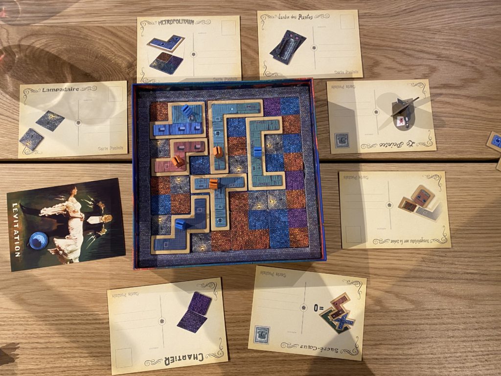 L’auteur de Paris Ville Lumière, Jose Antonio Abascal, est également auteur de Checkpoint Charlie, sorti en 2016, qui est un jeu d’observation et de déduction léger. Ici, rien a voir, on est dans un jeu de placement de tuile sur deux niveaux pour 2 joueurs uniquement.