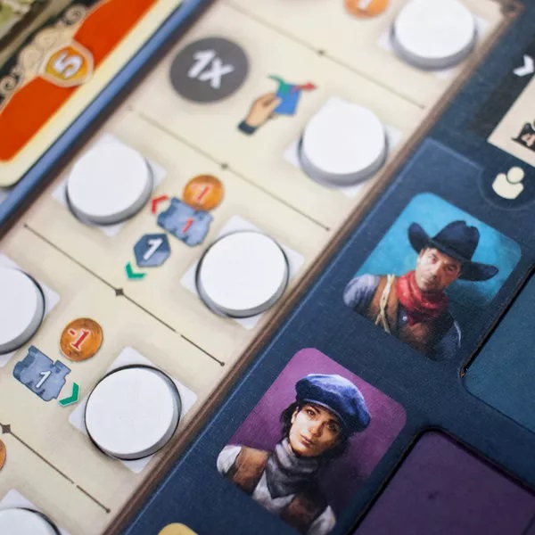 Lorsque vous livrez dans une ville ou lorsque vous vous arrêtez dans une gare, vous pourrez y déposer un jeton à votre couleur que vous prendrez de votre plateau personnel. Un peu à l’image de Terra Mystica ou de Scythe, lorsque vous prendrez un jeton de votre plateau personnel vous libèrerez une case qui vous rapportera une capacité supplémentaire: pouvoir réaliser une action annexe, augmenter la taille de votre main, augmenter le nombre de cases de déplacement, pouvoir livrer son bétail avec un bonus de valeur,… Une bonne gestion de votre plateau personnel vous apportera encore plus de possibilités.