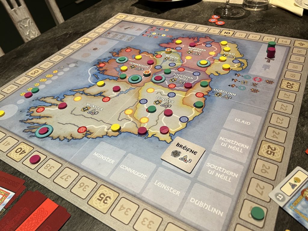 Brian Boru me fût brièvement présenté lors du dernier FIJ à Cannes (2022). Mais vraiment très brièvement. Cependant, assez pour titiller ma curiosité: jeu de plis avec une interaction sur un plateau central via majorités!