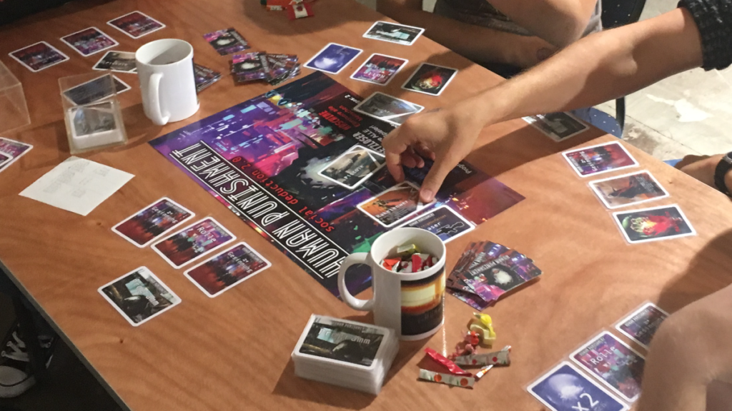 Dès que l’identité d’une joueuse est dévoilée, Human Punishment s’emballe. Quand une joueuse dévoile son identité, elle a évidemment un désavantage par rapport aux autres mais également une force. Elle peut utiliser la capacité propre à son personnage qui va influencer le jeu. C’est là où les soupçons vont se vérifier car chacun va agir en fonction des identités dévoilées. La fin du jeu a des allures de combat épique entre 2 factions ce qui donne des sensations ludiques bien différentes tout au long de la partie.