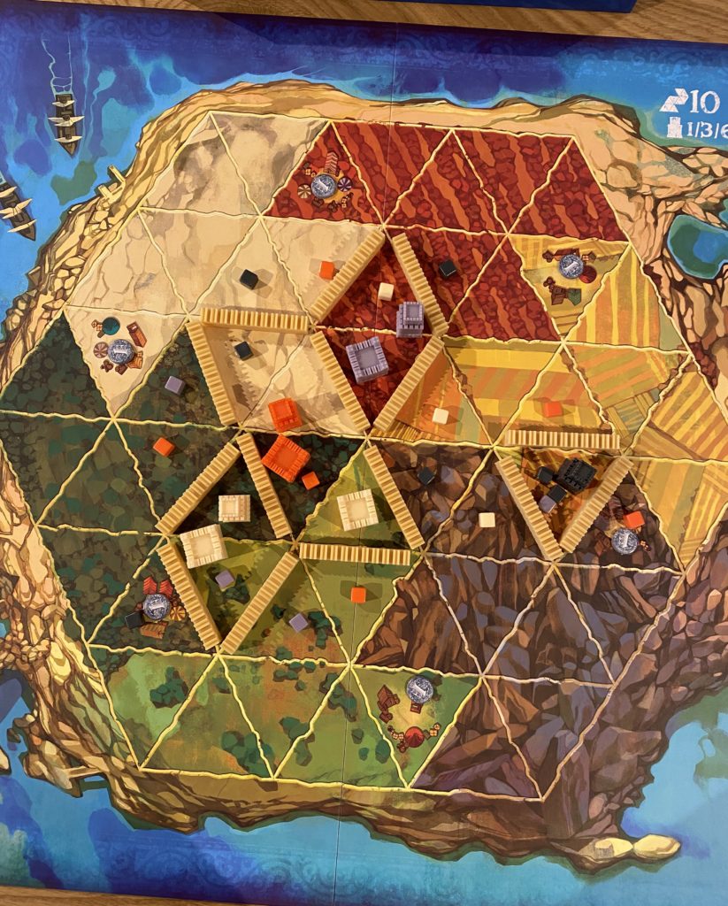 Et on va encore plus loin: si votre nouveau domaine ainsi créé est adjacent à un autre domaine, vous pouvez si vous en avez les moyens, l’annexer. Cela coûte plus que de créer un domaine. En effet, il vous faudra cette fois payer 2 pièces/case, 1 pièce par maison et 5 pièces par Villa. Le total est payé au joueur à qui appartient le domaine que vous annexez, peu importe à qui appartiennent maisons et villas! L’avantage de cette opération est d’avoir un domaine plus étendu qui peut vous rapporter des PVs en fin de partie, de rendre votre domaine plus cher à annexer et d’éviter de vous faire piquer votre nouveau petit domaine, bien fragile! Evidemment, il faut en avoir les moyens car cette opération peut coûter chère, surtout pour les domaines de taille un peu plus importante!