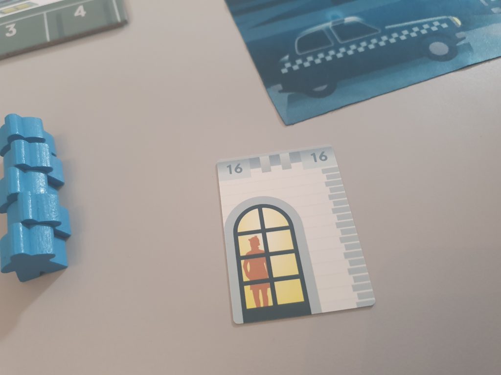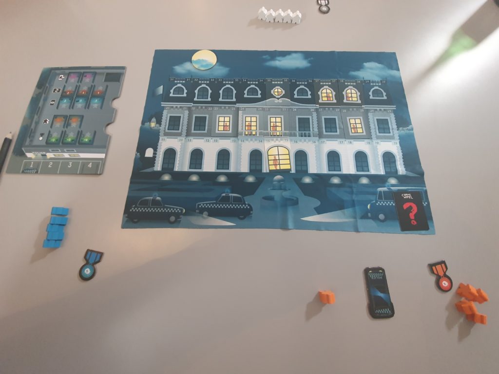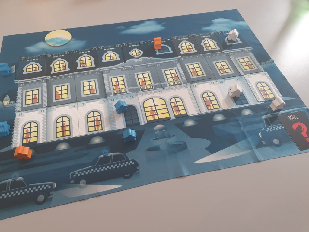 Peu à peu, les chambres vont s’éclairer et les déductions seront de plus en plus précises. Au dernier tour, on révèle tout simplement notre dernière carte et on la place directement sur l’hôtel sans faire agir de meeples. Ceci a permis de garder un peu de mystère jusqu’au bout. On aura alors la position du criminel !