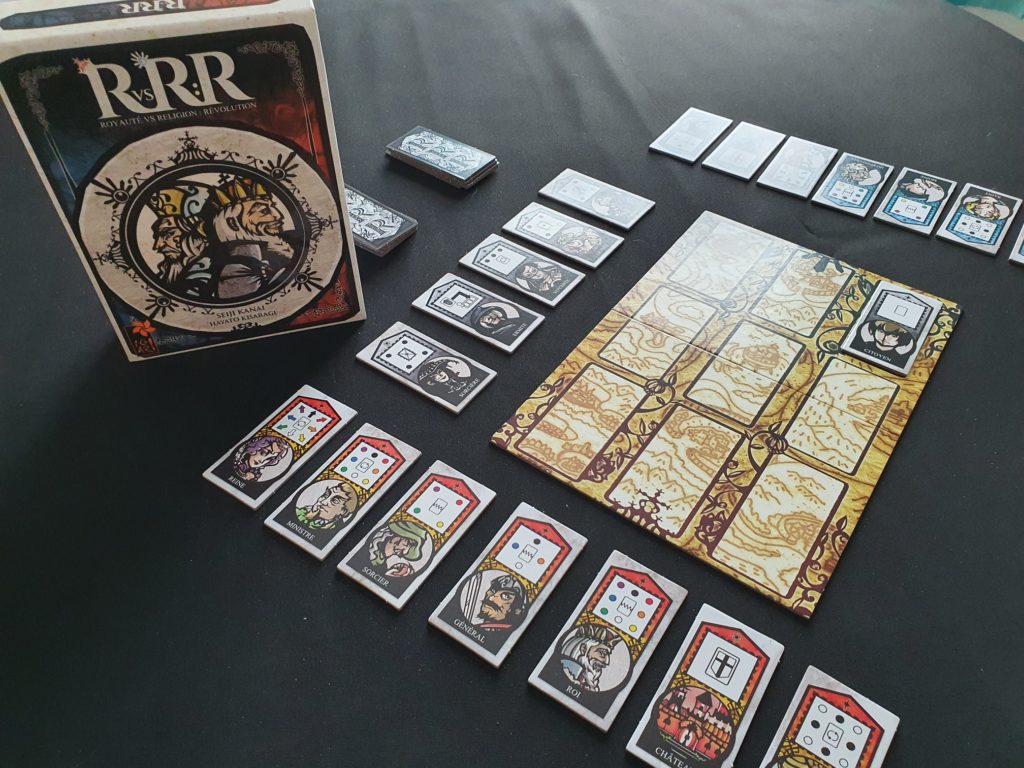 Bien que je parle de Love Letter, on reste avec RRR plutôt proche de Onitama dans le style de jeu. En effet, le jeu va mettre des pièces en opposition, chacun les siennes pour occuper le plateau. Mais sur le côté, d’autres pièces neutres seront disponibles aux deux joueurs à tout moment.