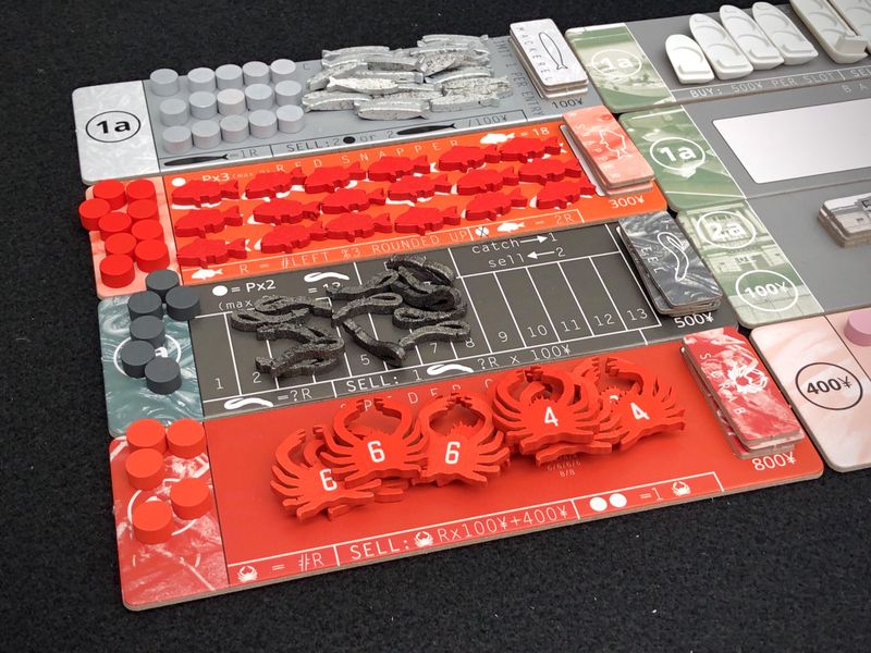 Comme son nom l’indique, Tokyo Tsukiji Market est un jeu de commerce. Je dirais même qu’il relève haut la main d’être LE jeu de commerce absolu. De nombreux auteurs ont essayé, Jordan Draper l’a fait : réaliser un jeu qui simule parfaitement le commerce.