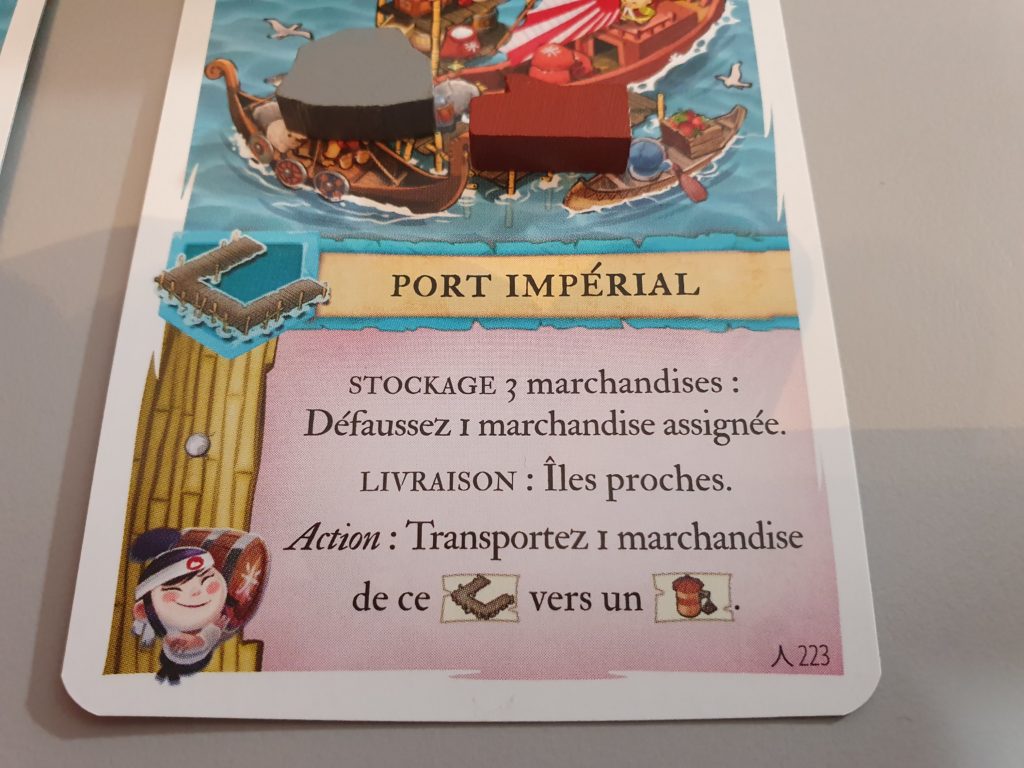 Ces deux phases lui sont essentielles, car il pourra se développer en livrant des marchandises et en les stockant sur des cartes. Les marchandises en question sont bien sûr des ressources. Une fois stockés selon des conditions et une quantité définie par la carte, le joueur pourra alors les défausser pour enclencher des effets intéressants comme, bien sûr, gagner des points de victoire !