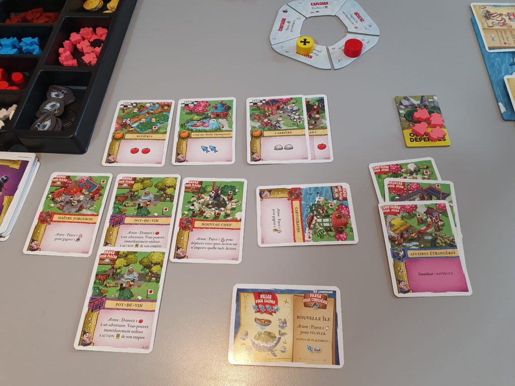 Comme beaucoup de choses se font par des « Offrandes », c’est un clan où il faudra songer à faire de la production, en particulier les pommes. D’ailleurs, cette production vous permettra aussi d’activer les cartes les plus rentables qui vous demanderont de défausser trois ressources différentes.