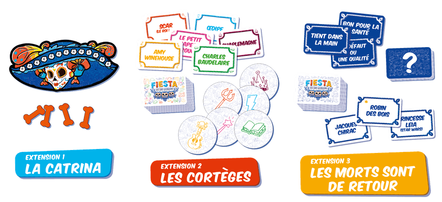 Il est rare qu’un jeu d’ambiance ait droit à une extension. J’imagine que le succès mérité de Fiesta de los Muertos a permis la réalisation de cette extension et c’est tant mieux tant on aime ce jeu de par chez nous.