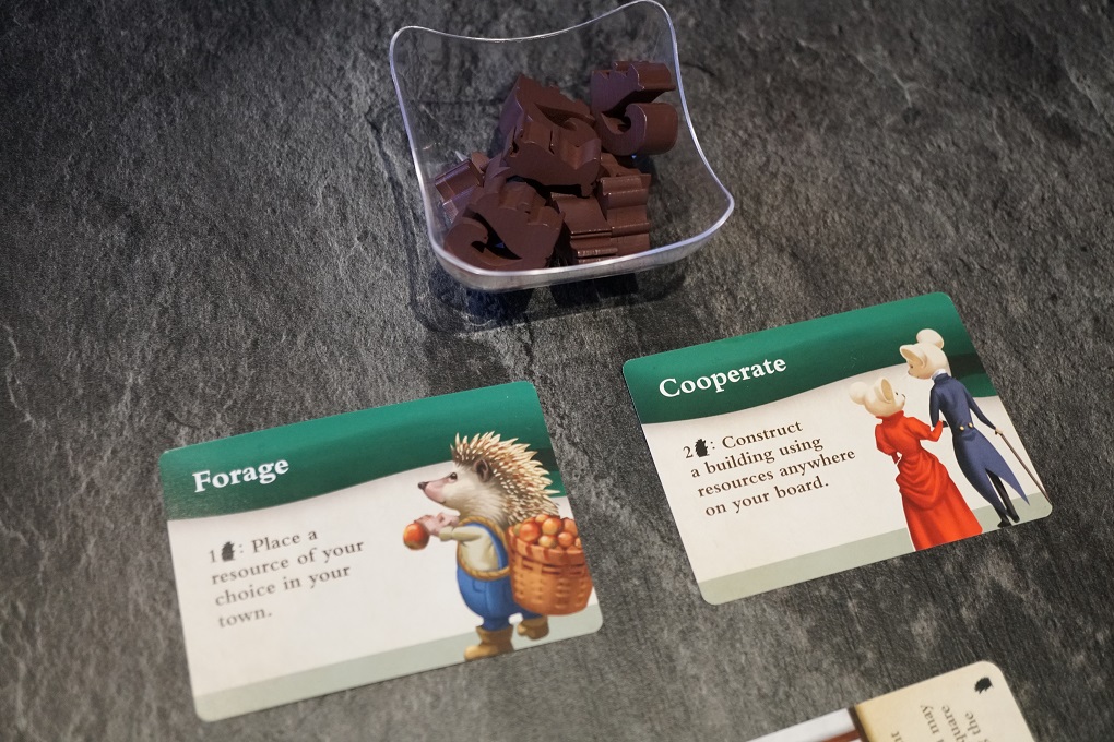 Les effets des cartes villageois sont assez puissants. En retirant un ou deux villageois vous allez pouvoir ajouter un cube ressource de votre choix à votre ville, prendre des ressources où vous voulez dans votre ville pour construire un bâtiment (plus nécessairement adjacentes), pouvoir construire un bâtiment avec une ressource manquante, pouvoir construire un bâtiment avec des ressources différentes mais uniques, ne pas placer une ressource citée par une autre joueuse,…