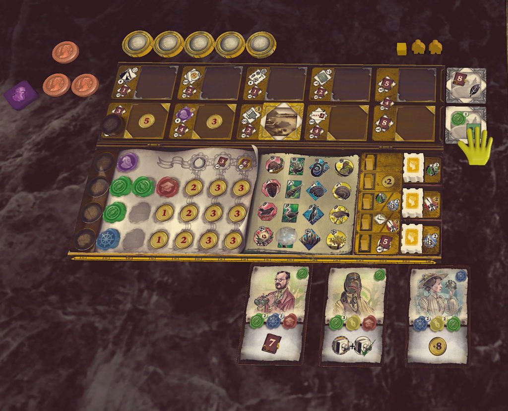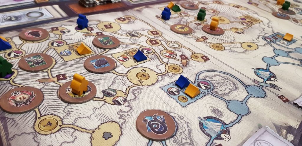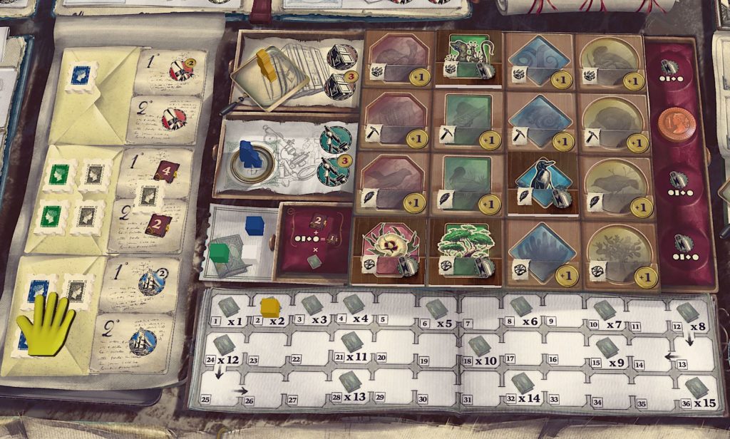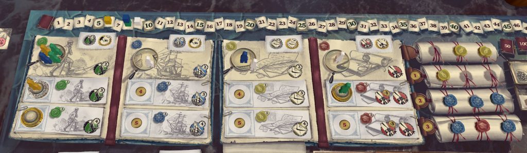 Vous allez pouvoir faire naviguer votre bateau pour grapiller certains bonus et éviter la perte de trop de points à chaque décompte, écrire des lettres pour gagner des bonus en cas de majorité, acheter des sceaux et monter votre campement pour acquérir des bonus divers.