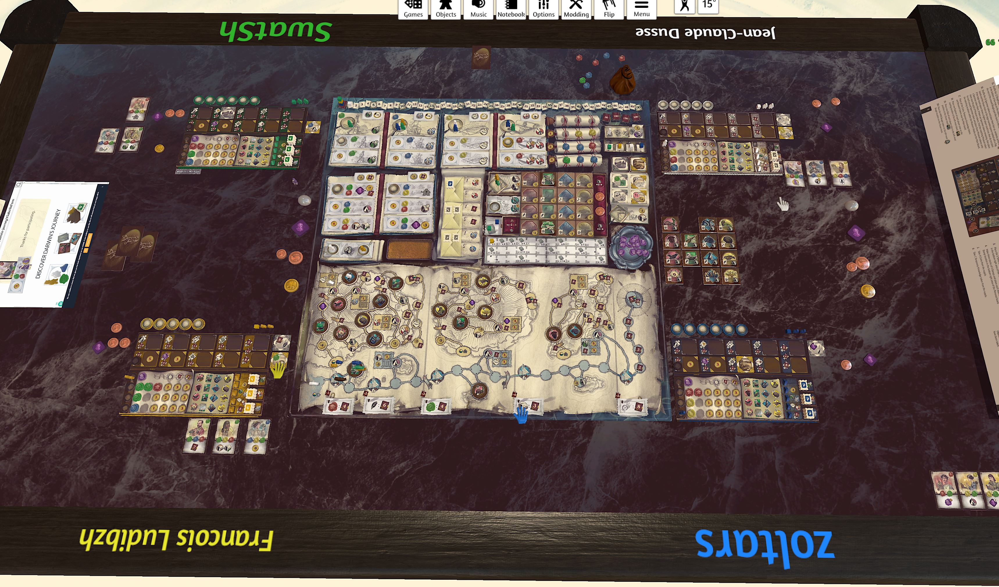 C’est grâce aux très sympathiques David, Christophe et François de l’excellent groupe Facebook « Ludistes Francophones joueurs d’eurogames pousseurs de Kubenbois » (avec le groupe Facebook de Vin d’jeu bien entendu 😉 ) que j’ai pu jouer à Darwin’s Journey sur Tabletop Simulator. C’est David qui nous a préparé et expliqué les règles et je le remercie encore une fois pour ce travail préparatif qui, on le sait tous, demande beaucoup d’efforts et de temps. Résultat: des règles limpides expliquées de mains de maître dont vous pourrez retrouver toutes les explications en fin d’article dans l’excellente vidéo de L’instant Gaming qui retrace les 55 minutes d’explications de David (commentées de nos questions).