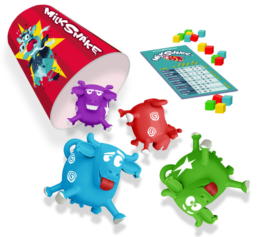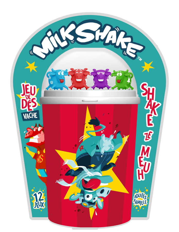 Il y a des jeux où l’on se demande comment les auteurs ont trouvé une telle idée ! Milkshake fait partie de ces jeux complétement loufoques que l’on n’imaginait pas un jour trouver. À quel moment se dit-on : « on va faire des dés en forme de vaches que l’on va secouer dans un shaker » ?