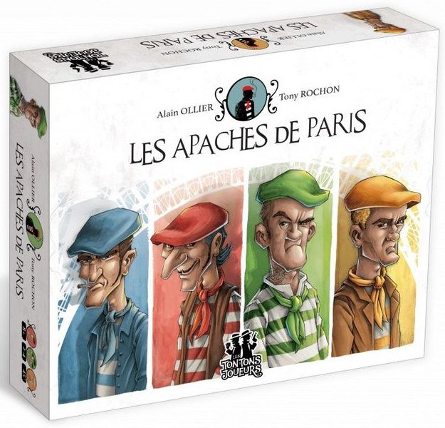Avant d’en venir à ces Apaches de Paris qui nous occupent ce jour, il faut parler 2 minutes de la maison d’édition, Les Tontons Joueurs. Cette dernière a été fondée récemment pas 2 vieux routiers du monde du jeu de société, Alain Ollier et Tony Rochon (Blackrock Games…). Leur démarche est à souligner: ils veulent produire des jeux qui sont fabriqués dans le pays où le jeu est vendu (donc en France par eux-mêmes, à l’étranger sous licence avec l’obligation de fabriquer le jeu dans le pays en question). Ils le reconnaissent, cela ne sera pas nécessairement facile. Mais à l’heure ou l’urgence environnementale nous hurle à la figure, quand pas une journée ne se passe sans qu’on ait à déplorer des catastrophiques climatiques, des désastres environnementaux et des désespoirs sociaux (tout étant lié), il faut que tout le monde agisse. Et les Tontons joueurs ont décidé d’agir concrètement, dans leur domaine. Clairement cela aura (/a) un impact sur leurs chances de succès. Sur leur probabilité de gagner plein de pépettes avec leurs jeux. C’est d’autant plus respectable de leur part de se lancer dans cette voie!