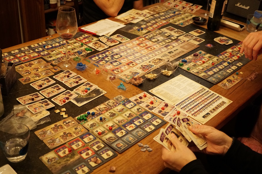 Anno 1800 est un jeu de gestion dans sa pure tradition. Les joueurs vont gérer leurs usines et leurs ouvriers, leurs ressources primaires, secondaires, tertiaires, les emplacements limités de leurs plateau personnel et les cartes « objectif » personnelles et communes. Le jeu est très long car la fin dépend des joueurs et il est rare qu’un joueur écourte la partie (c’est rarement à son avantage). Ca donne un jeu trop long et trop répétitif (on me dit néanmoins dans l’oreille qu’une extension corrigeant ce défaut est en préparation). Mais à l’exception de cette longueur exagérée, Anno 1800 tourne très bien. On peut aussi lui reprocher une certaine absence de montée en puissance. Sinon le jeu est très prenant et plaisant. On va constamment regarder ce qu’on veut construire, quelles ressources on a besoin pour ça et comment on va faire pour produire ces ressources. La gestion à tous les étages, l’interaction et l’ambiance autour de la table sont clairement les grandes qualités de ce jeu dans la lignée des grands jeux de gestion de ces 20 dernières années.
