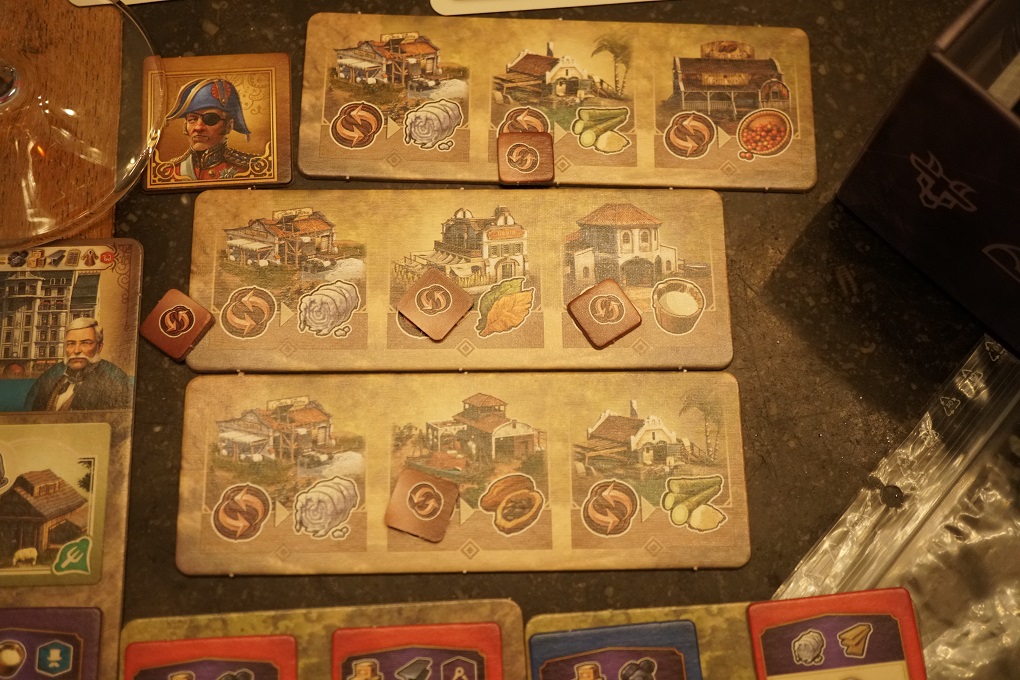 Ensuite lorsque l’on prend une nouvelle tuile usine celle-ci ne devrait pas être éligible au commerce avant que le tour nous revienne (ou après utilisation à ce même tour si on utilise une action en plus via le bonus d’une carte). En effet avec les objectifs communs et les seulement 2 tuiles pour chaque usine, on peut prendre une usine produisant la ressource prérequise pour une autre usine qui rapporte au final des PVs. Sauf que du coup avant que le tour nous revienne 2 autres joueurs nous auront acheté via commerce la ressource nécessaire pour l’usine à PV et paf les 2 tuiles sont prises quand notre tour revient et on a juste donné des PVs aux autres sans pouvoir les gagner… Le commerce permet aux autres de bénéficier de nos ressources avant nous ! Du coup chez nous pas de machine à vapeur qui permettait notamment le tracteur, effet pervers ce blocage rend en plus des cartes impossibles à faire du coup… Donc il faut que le commerce ne soit pas possible sur les tuiles que l’on achète juste le temps que le tour nous revienne, cela devrait aussi être corrigé. Cela permet à chaque joueur d’être le premier à pouvoir profiter de la nouvelle ressource qu’il produit.