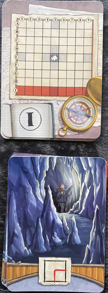 L’autre pioche, celle des cartes Exploration, s’épuise donc en décaller par rapport aux cartes Tunnel. Et lorsqu’elle s’épuise, une manche se termine et une sortie devient inaccessible.