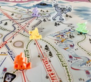 – Au cours du jeu, un Yéti est activé lorsque l’on joue des cartes Joker. Si un seul joker est posé, le yéti doit être déplacé sur une piste la rendant impraticable. C’est idéal pour bloquer les autres ! Par contre si un joueur utilise deux jokers, une avalanche se déclenche faisant descendre tous les skieurs d’un niveau. Dommage que ce yéti ou l’avalanche, ne soient pas déclenchés plus régulièrement car ils apportent une bonne tension aux parties. Parfois on ne les utilise pas de tout et cela se ressent.