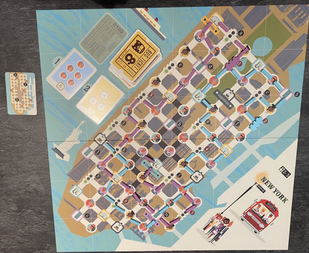 Tout d’abord, et c’est important, il y a un plateau central, recto-verso avec d’un côté le plan de Londres et de l’autre celui de New York. L’un est plus propice pour des parties à 2-3 joueurs tandis que l’autre est plus étendu et donc prévu pour 4-5 joueurs. C’est ce plateau central principalement qui a titillé ma curiosité car c’est pour moi synonyme d’interaction.