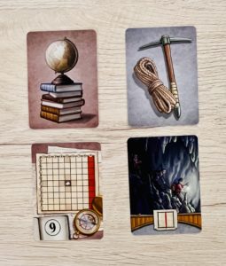 Voyage au centre de la Terre possède une grande part aléatoire difficilement maitrisable. Lors de la première partie, papa Meeple et moi avons subi le jeu sans comprendre comment s’y prendre pour gagner. Lors des parties suivantes, nous avons pu commencer à établir plus de tactique. Par exemple, il est possible de gagner sans trouver la sortie. Une fois que l’on a compris cela, on s’active plutôt à récupérer des découvertes que de tracer sa route vers une issue.