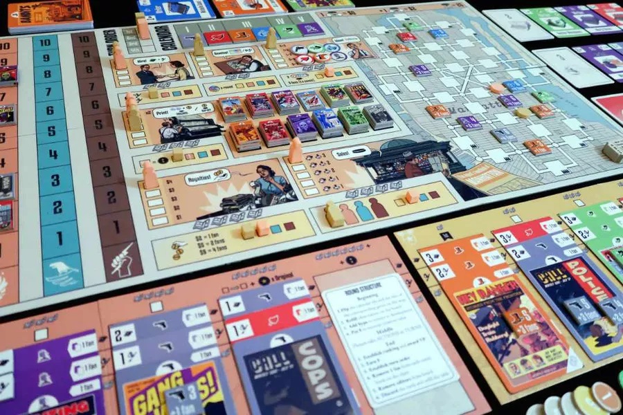 Le jeu, selon ses auteurs, est un jeu de catégorie intermédiaire, mais je l’ai quand même classé dans les experts car il n’est pas si simple que ça et se joue sur plus d’une heure. C’est un placement d’ouvriers intégrant une petite part de chance (mais franchement très minime) et magistralement ancrée dans son thème. Les joueurs représentent des éditeurs de comics qui vont rassembler autrices et dessinatrices autour de certains thèmes (romantisme, science fiction, western, horreur, super héroïne et crime) avec des idées originales afin de publier des comics et de les mettre sur le marché à un certain prix dépendant de la qualité des autrices, dessinatrices et du thème choisi. Et oui, on pourrait aisément transbahuter ce thème autour du monde du jeu 😉 Mais évitons d’être narcissique si vous le voulez bien 😀