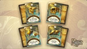 Si les belles cartes et le fait de devoir en retrouver une parmi une rivière fait penser à Dixit, la comparaison s’arrête là. Dans Muse : Avènement, la liberté, l’imagination pour faire deviner une carte est très dirigée puisqu’elle est imposée par la carte Inspiration. Quand cette dernière vous impose de citer un insecte non fictif, votre choix est limité. Si en tant qu’adulte j’ai parfois été frustrée d’être entravée comme ça, je reconnais que cette demande aide beaucoup les joueurs en panne d’inspiration ou les enfants. L’autre grande différence est le rôle des adversaires qui peuvent vraiment rendre la devinette très compliquée. Rien de plus simple pour eux que de choisir deux cartes ayant le moins de points en commun ! Heureusement, les cartes ont été étudiées pour avoir un moyen de les faire deviner mais parfois il faut se creuser les méninges.