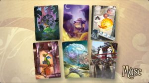 On commence par créer des équipes (deux ou plus). Dans Muse, on est en collaboration avec une partie des joueurs et en compétition avec les autres, et ça c’est cool ! La première équipe désigne sa muse parmi ses membres, c’est elle qui devra être la source d’inspiration. La deuxième équipe, quant à elle, pioche six cartes Chef-d’œuvre ainsi que deux cartes Inspiration. Ils choisissent une de chaque qu’ils transmettent à la muse. La carte inspiration lui donne une direction obligatoire à suivre concernant un indice qu’elle va donner à son équipe. Les six cartes Chef-d’œuvre qui avaient été piochées, vont être mélangées puis placées face visible afin que la première équipe retrouve la carte qui était en possession de la muse. Si elle réussit, elle marque les points inscrits sur la carte Inspiration. La première équipe qui atteint 12 points gagne la partie. Les rôles s’inversent ensuite.