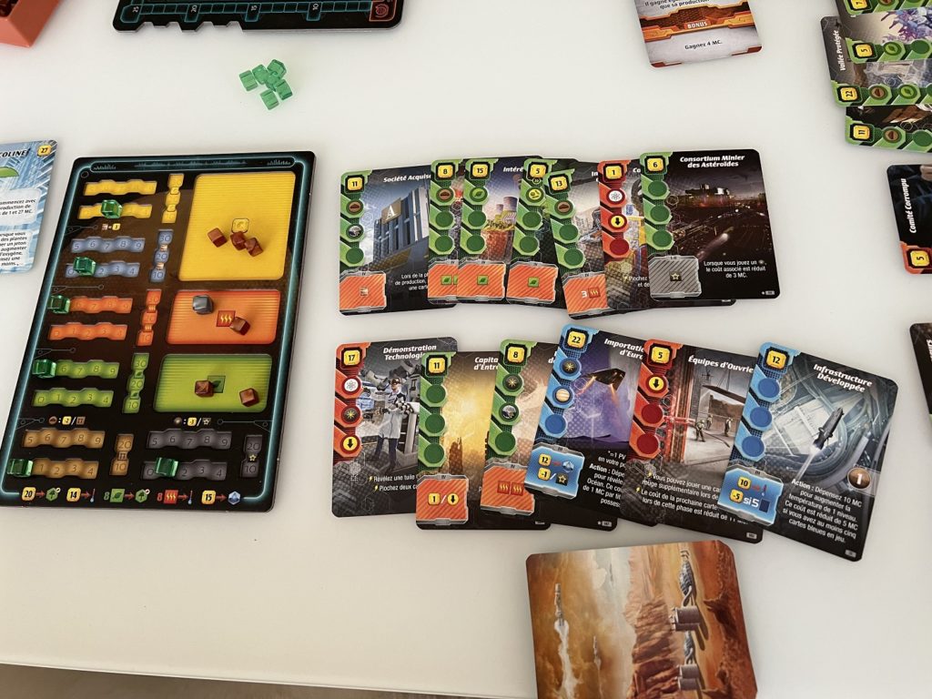 Les cartes ont été rééquilibrées différemment et il est beaucoup plus facile de faire des combos avec les plantes ou les microbes que dans le jeu de base. De plus, Terraforming Mars Expédition Arès est beaucoup plus simple et épuré que sa version d’origine. Les amateurs du jeu d’origine comme nous pourront pleurer l’absence de réel plateau central où les joueurs se battent pour les territoires de ville, forêt et océans ainsi que l’absence d’objectifs communs. Ces mécaniques absentes d’Expédition Arès vous diminuer fortement la tension du jeu. C’est évidement dommage mais c’est pour ça qu’il s’agit d’un jeu différent 😉