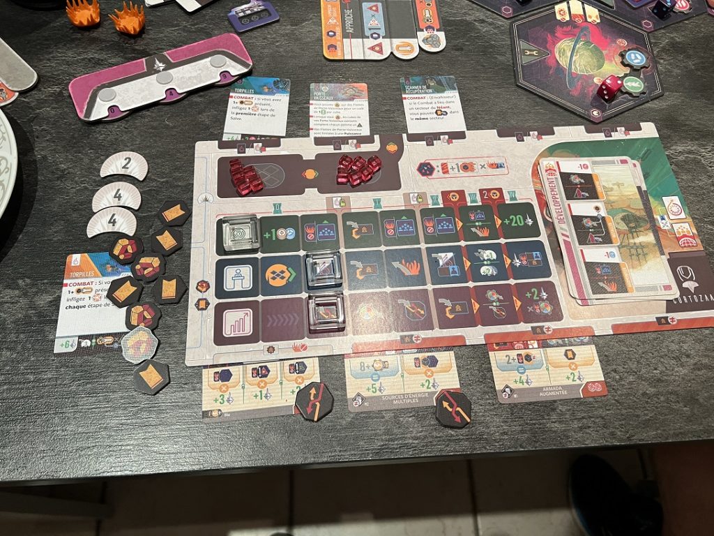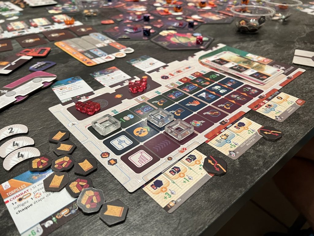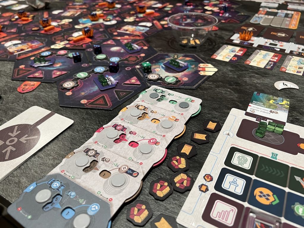 Voidfall est très complexe. Il y a beaucoup de matos et beaucoup d’icônes à maîtriser. Et un livret de règles bien évidemment touffu! La mise en place ne prend pas 5 minutes, c’est clair! Mais il faut passer par là pour goûter à ce jeu. et il vous faudra certainement plus d’une partie pour en faire le tour.