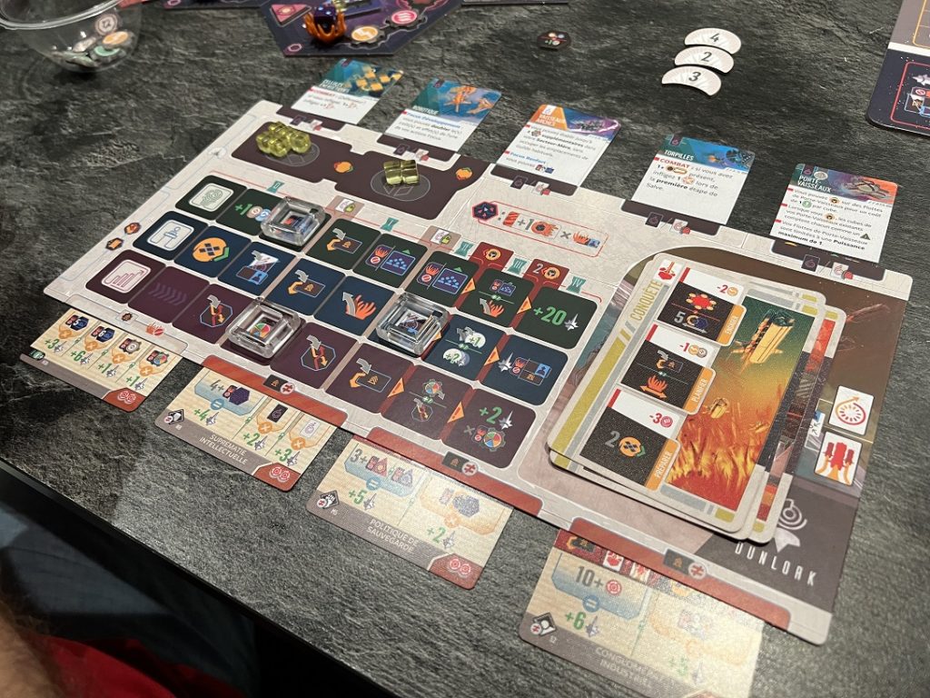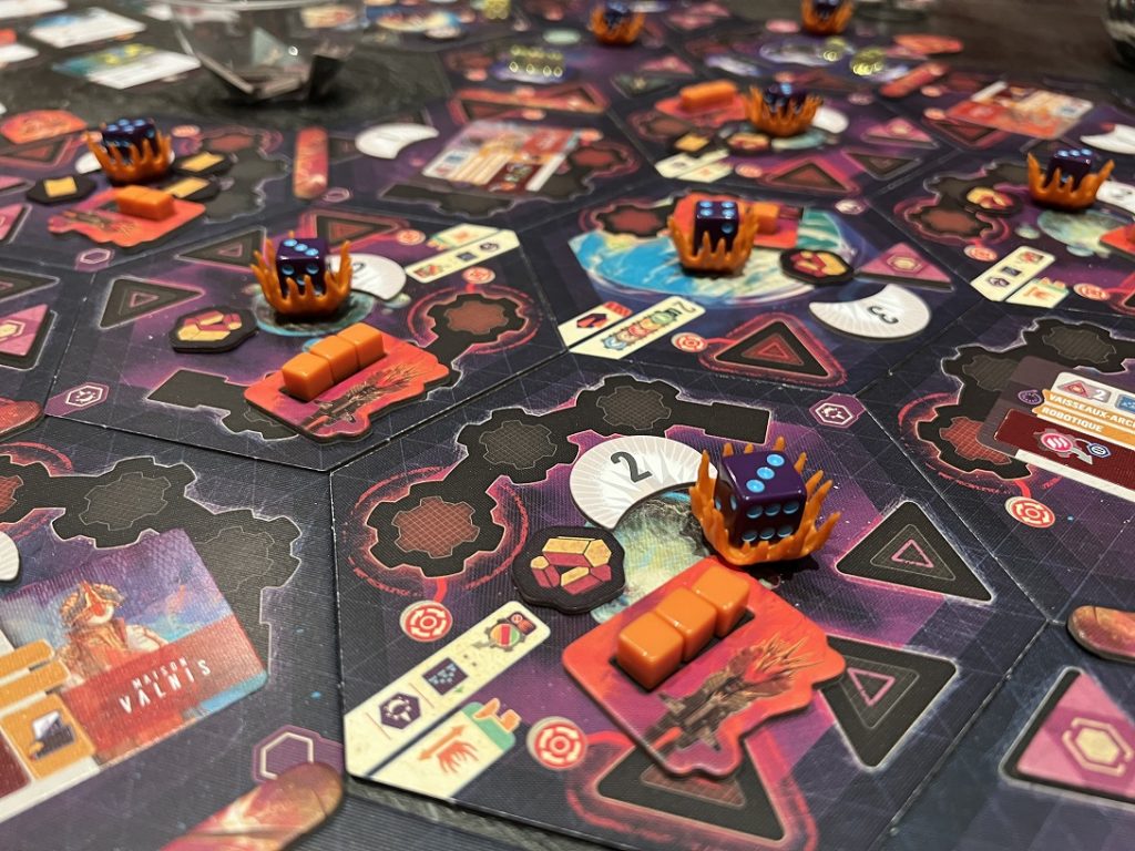 Le petit point négatif de Voidfall est le temps forcément long pour ce type de jeu, que ce soit pour l’installation comme pour la partie en elle-même. De plus, comme les choix d’actions sont nombreux, il est normal de prendre du temps pour mettre en place sa stratégie et optimiser l’ordre des actions… analysis paralysis quand tu nous tiens ;-).
