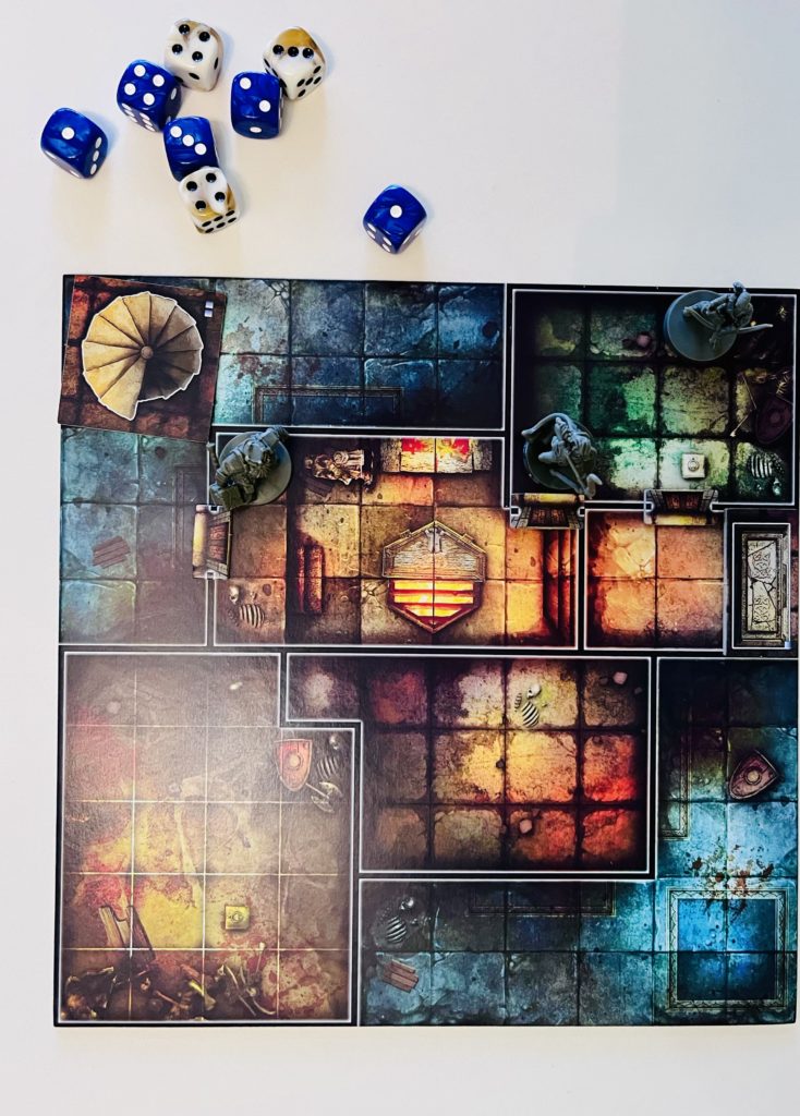 – L’objectif de ce type de jeu est bien d’explorer un donjon. Pour cela, les héros ont des points de déplacement à utiliser à chaque tour. Il faut porter une attention particulière à la position finale de la figurine car elle détermine son arc de vie. Tout ce qui est dans leur dos représente un point faible car ils ne peuvent pas voir ce qui arrive. Cet arc de vie est aussi valable pour les monstres. Comme tout endroit rempli de créatures qui veulent votre peau, il y a beaucoup de pièges à éviter…