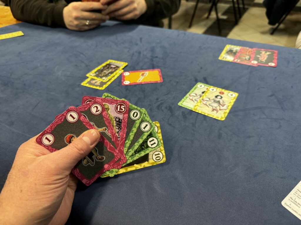 Le jeu comporte 3 couleurs, chacune allant de 1 à 14 avec l’une ayant un « 0 » en plus (le chien) et une autre ayant un « 15 » en plus, le vieux monsieur. Il s’agit d’un must follow sans atout et où on joue ce qu’on veut si on ne sait pas suivre.