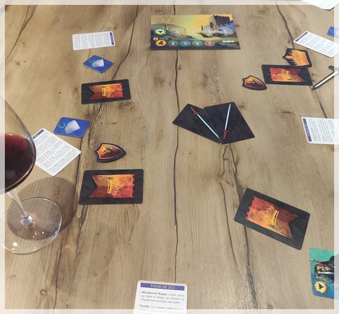 En effet, le Roi va solennellement confier à chaque aventurier faisant partie de l’équipe une paire de cartes quêtes, deux choix : Réussite ou Echec !