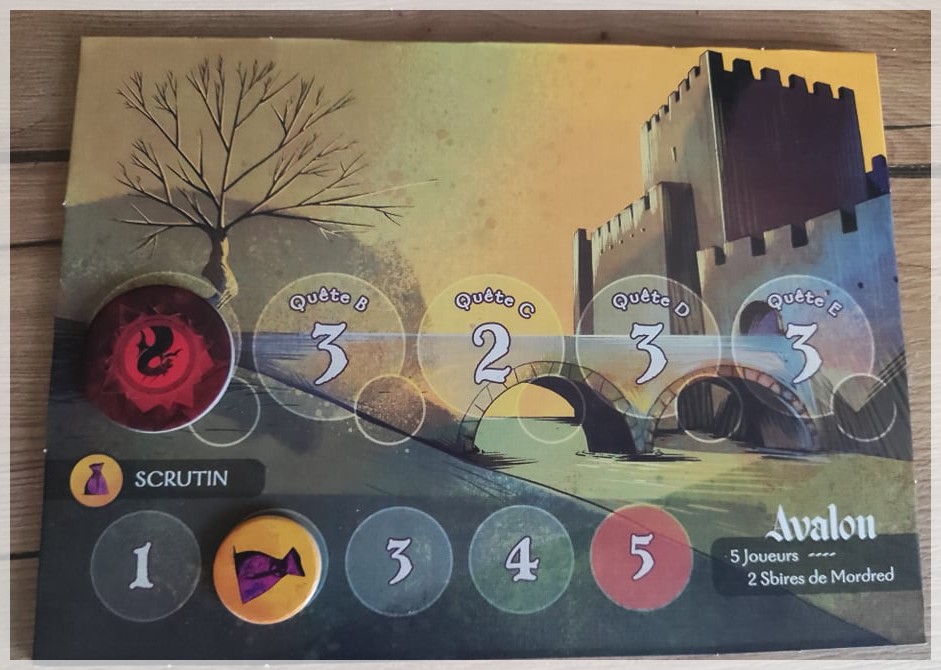 L’aventure peut débuter sachant donc que parmi tous ces personnages se cachent « Merlin » , agent du bien qui est le seul à connaitre les agents du Mal. L’Assassin lui, sera la dernière chance de Mordred si ce dernier découvre Merlin et le tue si la bande d’Arthur réussit l’ensemble des quêtes nécessaires pour remporter la partie.