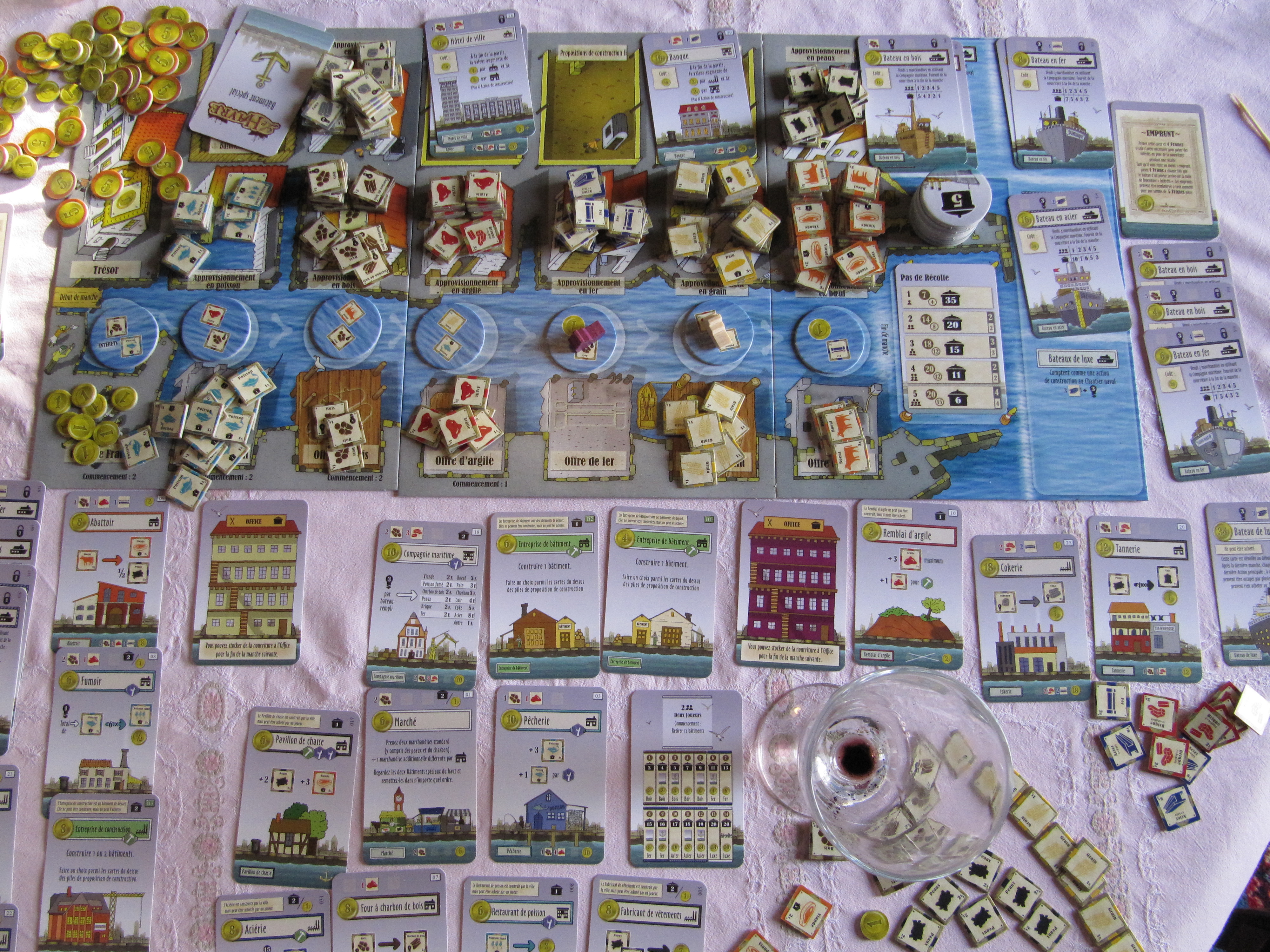 Superbe partie de « Le Havre » dans lequel je retrouve les ingrédients que j’avais aimé dans Agricola et notamment cette impression oppressante de n’avoir jamais assez d’action pour pouvoir réellement avancer;-) La contraine de nourriture est très forte et on doit régulièrement compenser en mettant la main à la poche… et malgré tout, on construit sa stratégie en achetant (et vendant!!!) des bâtiments, on s’endette (et on rembourse avant la fin!!!), et on prend son pied en voyant l’adversaire se débattre dans les mêmes problèmes;-)