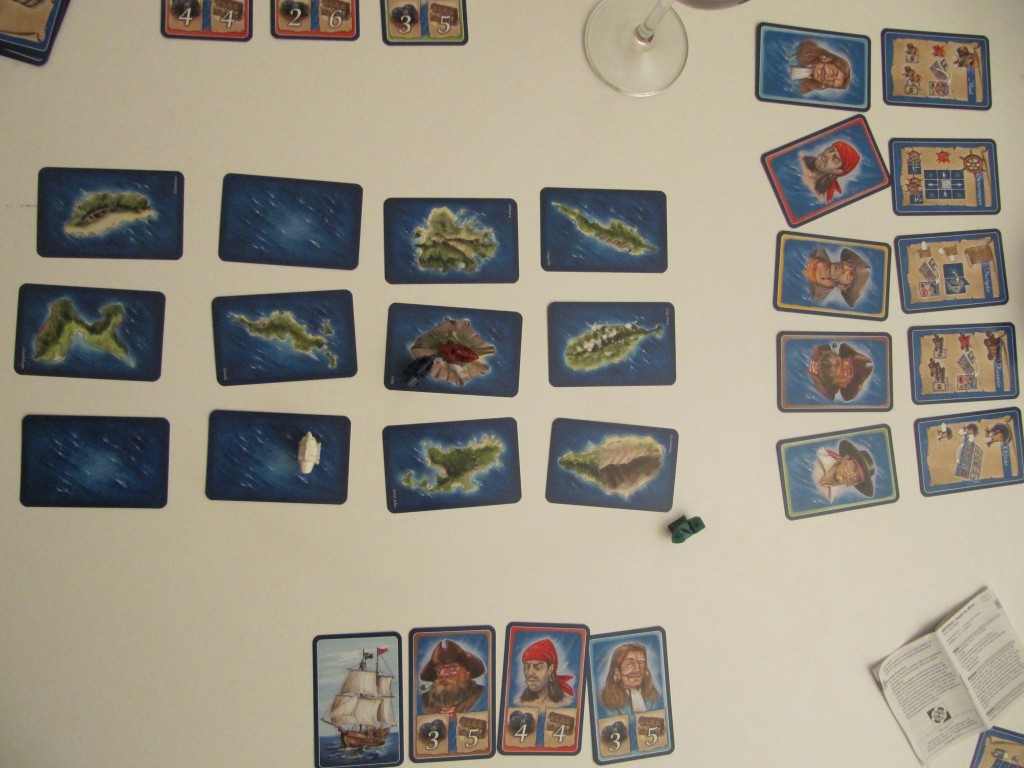 J’ai ramené ce petit jeu d’Essen. Il m’avait intrigué sur le stand de Adlung. En effet, voir ces cartes représentant des îles et l’enthousiasme des joueurs autour de la table a terminé de me convaincre. Après plusieurs mois, je me décide enfin à passer à travers les règles. A la fin, je suis un peu déçu principalement par la méthode utilisée pour résoudre les combats: on tire une carte et celui qui a le plus de boulets l’emporte. Plus aléatoire que cela, y’a pas!